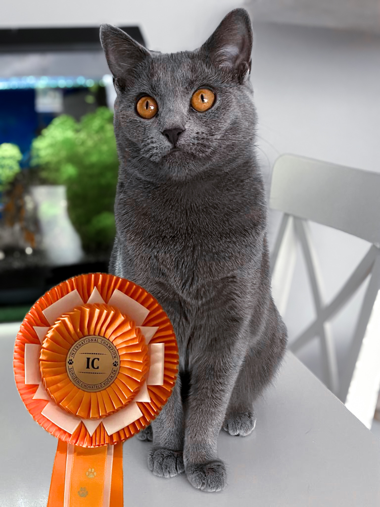 Blueberry je dcera Limetky a úžasného tatínka GIC Xavera z CHS Cvirn. Všechna koťata z vrhu B byla od začátku velmi mazlivá, ale jen Blueberry nám lezla na hlavu, kde se spokojeně uvelebila, když jsme si sedli, usínala nám v dlaních a jasně dávala najevo, že chce zůstat u nás. Vyrostla z ní krásná kartouzska, která se velmi líbila i posuzovatelům na své první výstavě. Moc si to užívala, a tak jí přejeme ještě hodně úspěchů. Pro nás to ale stále bude naše holčička, která nám stále ráda leze na hlavu, spí ráda pod peřinou, hodiny by si nechala hladit bříško, ale současně jí nic neuteče, má o všem přehled a ráda si hraje s maminkou Limetkou na honěnou nebo na schovávanou.