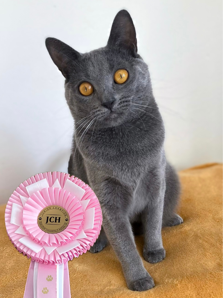 Naši první chovnou kočku Limetku jsme si pořídili z CHS Klamovka v roce 2020. Nemohli jsme se dočkat až si ji přivezeme domů a moc dobře si vzpomínám, jak nám ty 3 měsíce neutíkaly a jak jsme byly vděční za každou fotku a zprávu, jak se má a co už všechno umí. Nakonec jsme se dočkali a přivezli jsme si domů typického představitele kartouzské kočky, naši velkou lásku Limetku. Naše první chovná kočka, povahově naprosto úžasná, jemná, milá, hravá, mazlivá, přátelská, no prostě typická kartouzska. Je to šplhavec, miluje rozhled z výšky a přehled o všem.
